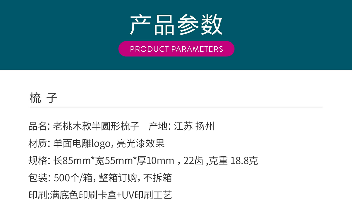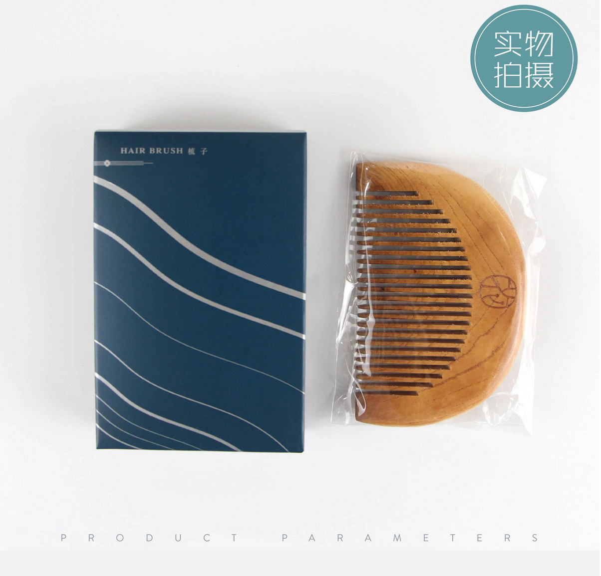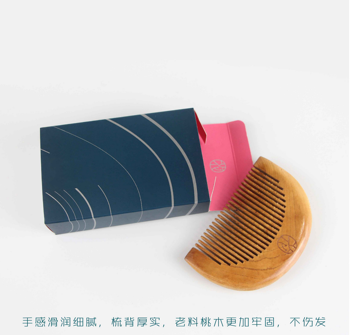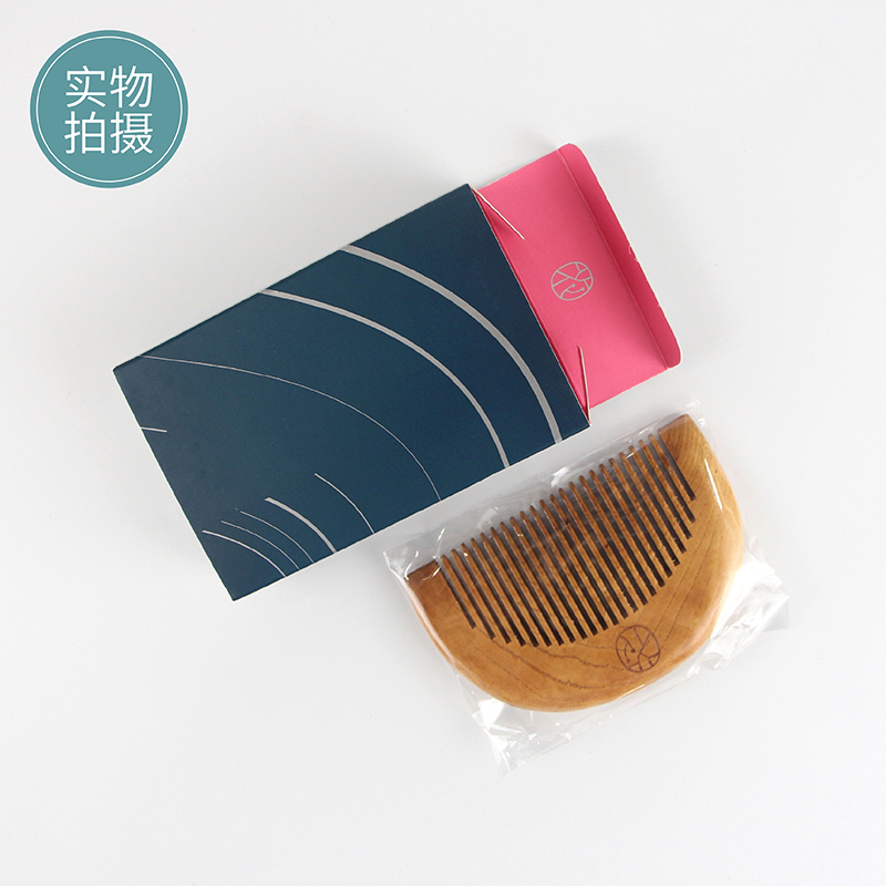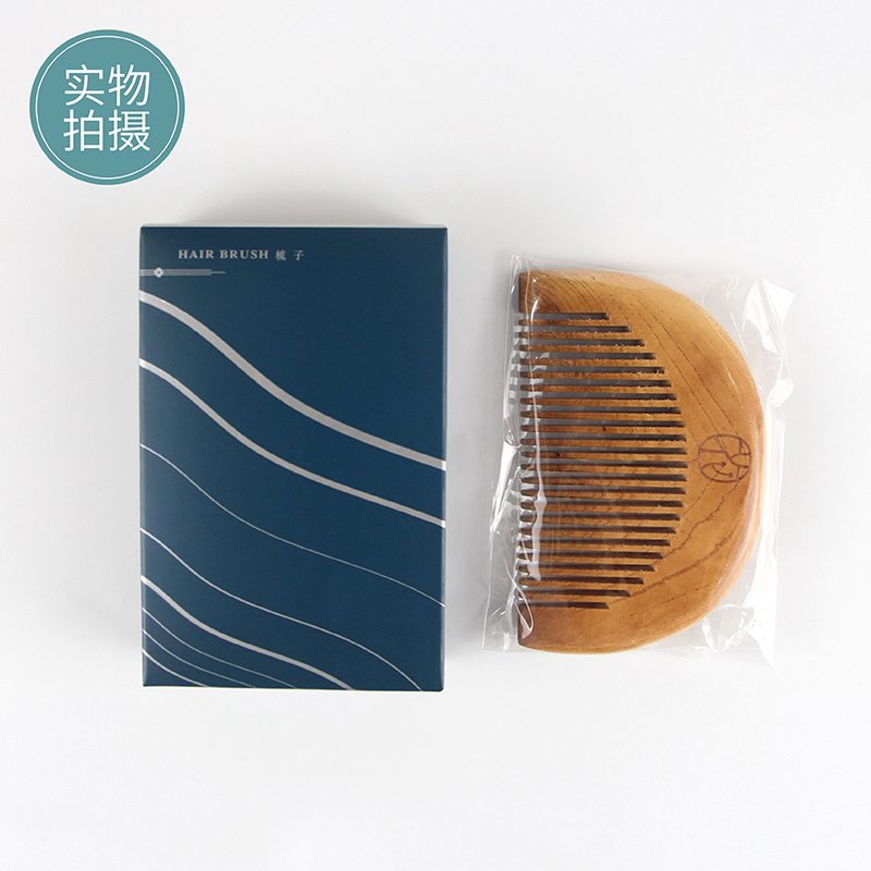 老桃木款半圆形梳子 卡盒 独立包装